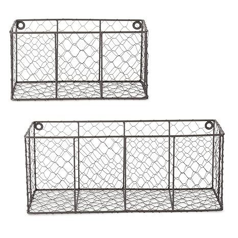 Dii Farmhouse Vintage Chicken Wire Wall Basket Set Of 2 Assorted Rustic Bronze